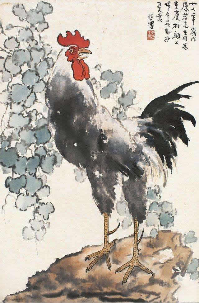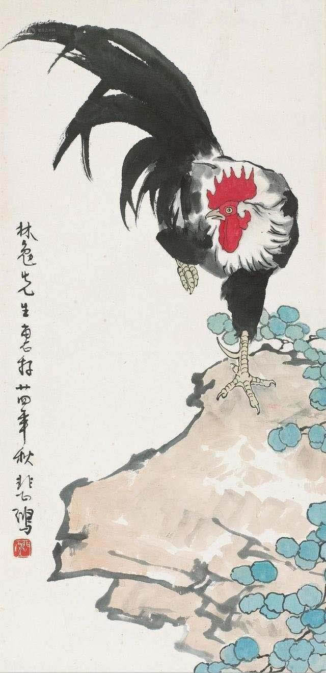 徐悲鸿(1895-1953年)。中国现代画家、美术教育家。曾留学法国学西画,归国后长期从事美术教育,先后任教于国立中央大学艺术系、北平大学艺术学院和北平艺专。1949年后任中央美术学院院长。擅长人物、走兽、花鸟,主张现实主义,于传统尤推崇任伯年,强调国画改革融入西画技法,作画主张光线、造型,讲求对象的解剖结构、骨骼的准确把握,并强调作品的思想内涵,对当时中国画坛影响甚大,与张书旗、柳子谷三人被称为画坛的“金陵三杰”。所作国画彩墨浑成,尤以奔马享名于世。