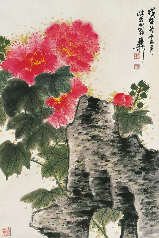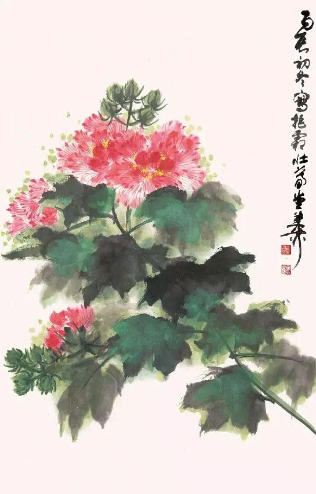 谢稚柳笔下的芙蓉花,落墨赋彩,酣畅淋漓,挥洒自如。既有明代青藤白阳的逸笔墨韵,又具文人雅士的书卷气,当可为绘写芙蓉花之楷模。