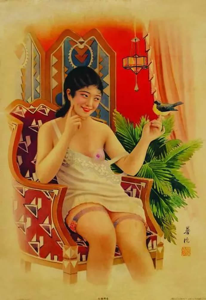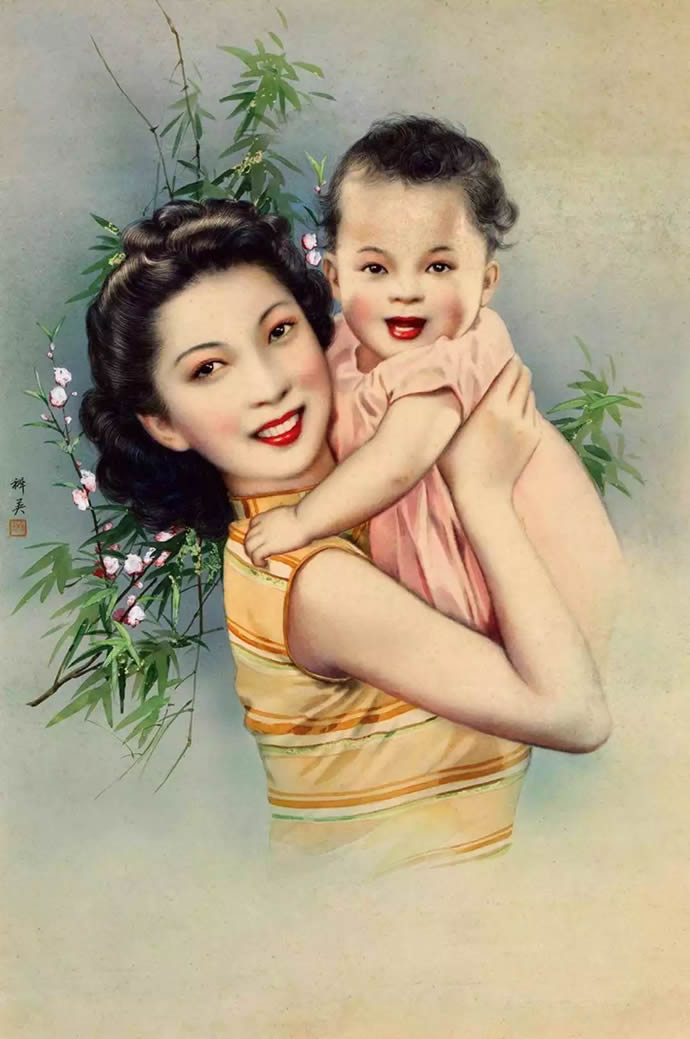 那时候,月份牌广告画早已开始在上海流行,在郑曼陀看来,那些画远不及他创造的新式时装美女形象悦目,他对于自己一手创立的「擦笔水彩画法」非常自信。