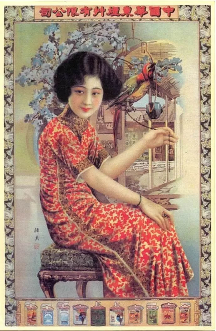 与单打独斗的月份牌画师不同,穉英画室的运作模式类似于今天的广告制作公司,成员之间分工合作,有专门的人接揽业务,由杭穉英负责创意和起稿,李慕白画人物,金雪尘画背景,花边和美术字也都有专人负责,最后由杭穉英统一修饰并盖上穉英的图章。