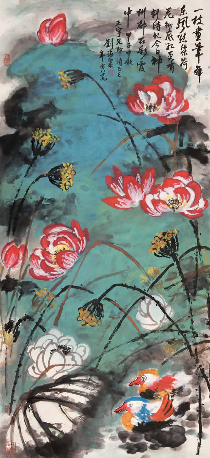 △刘海粟 1984年作 荷花鸳鸯
