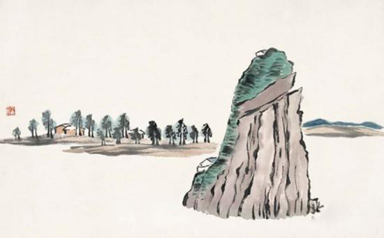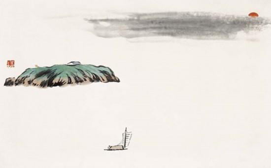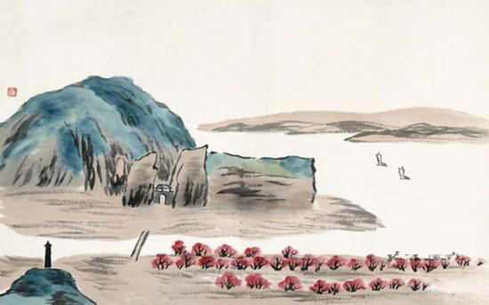 白石老人的山水画创作构图奇简,没有复杂的皴擦点染,也没有平铺细抹的死功夫。用笔简洁凝重、用色明艳单纯,于拙处可见真意,于简处能现画境——令人赏之回味无穷。