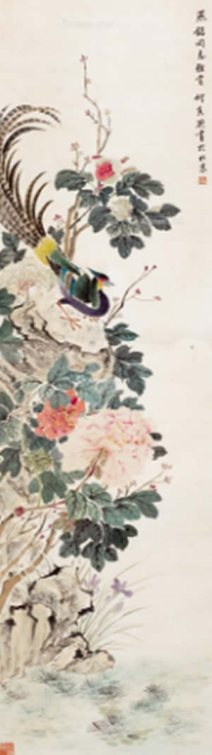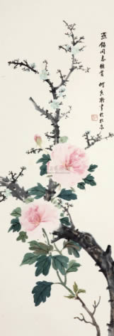 · 花开富贵 立轴 设色纸本
