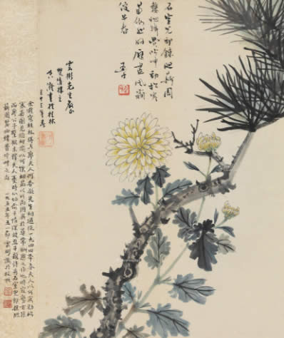 · 1944年作 劲松寒菊图 镜心 设色纸本