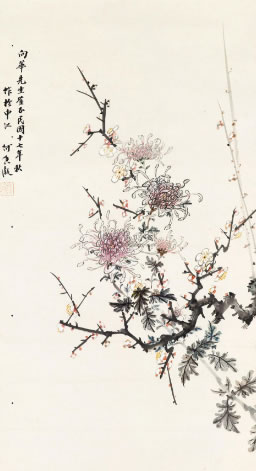 · 1928年作 梅菊 立轴 设色纸本