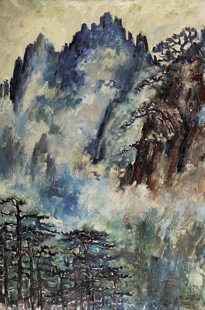 7、1962年作 黄山莲花峰 布面 油彩