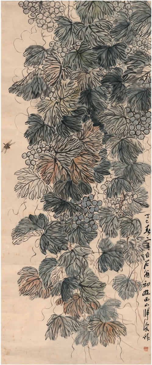 齐白石为了请吴昌硕写“润格”,便作诗:“青藤雪个远凡胎,老缶衰年别有才;我欲门下为走狗,三家门下转轮来。”以呈向吴昌硕表示出心中倾慕之情。
