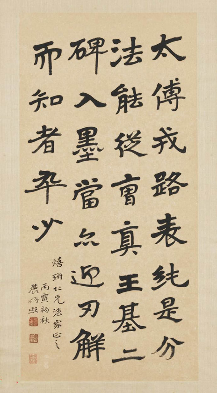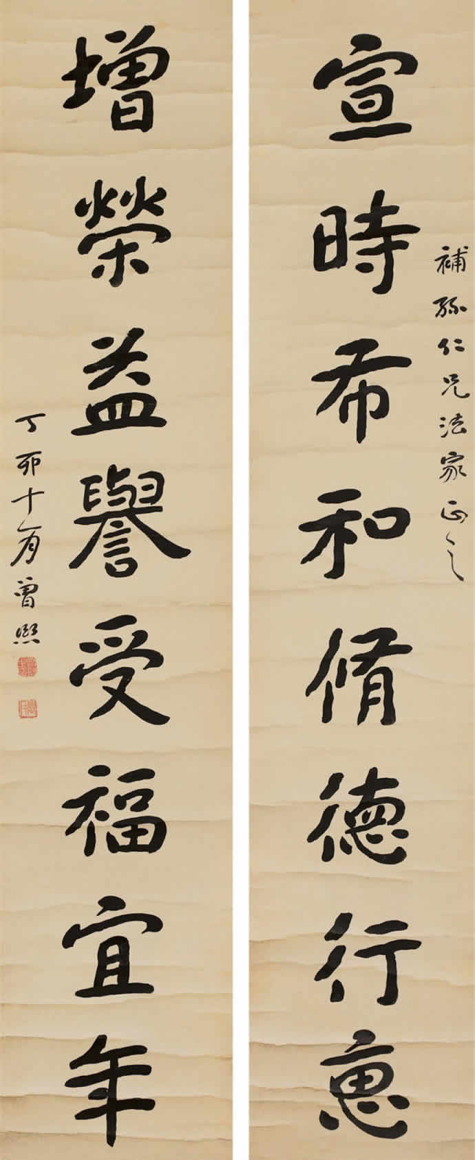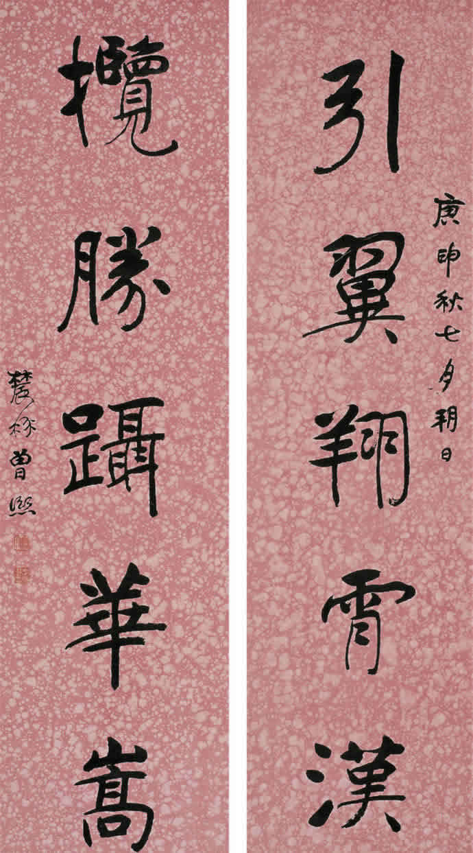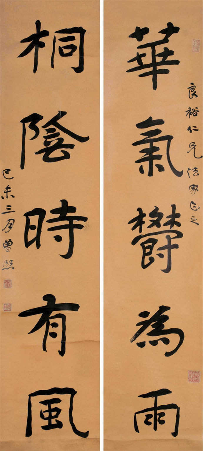 曾熙(1861-1930),湖南衡阳人。工诗文,擅书画。书法自称南宗,与李瑞清的北宗颉颃,世有“北李南曾”之说。1915年始于上海鬻字。其书得力于《夏承碑》、《华山碑》、《张黑女》等,以汉隶圆笔为本,下穷魏晋,沟通南帖北碑,融合方圆,遂成就宽博纵逸的风貌。