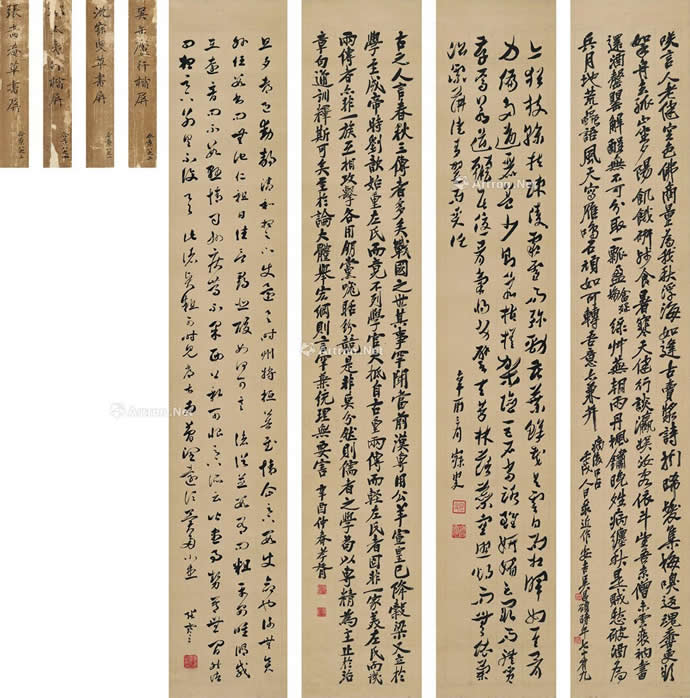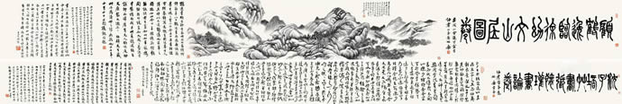 尺寸:引首31×85cm;本幅31×83cm;31×278cm;题跋33.5×400cm