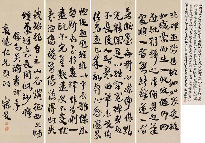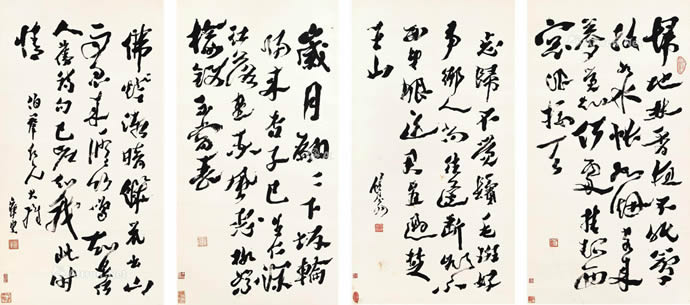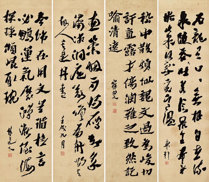 8、行书 四屏 水墨纸本