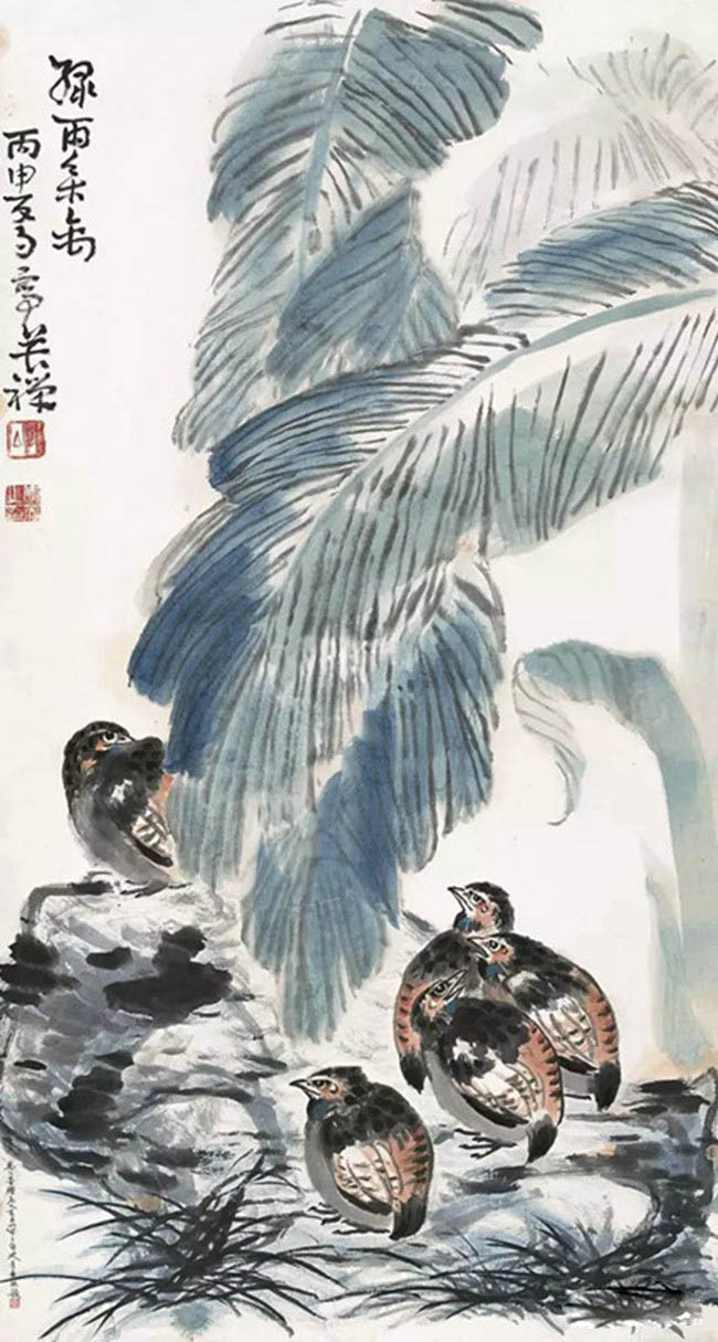 李苦禅 绿雨集禽