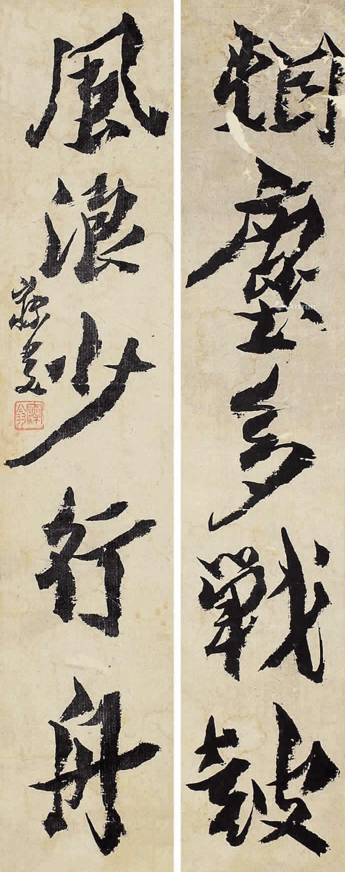 △沈曾植《行书七言》136×32cm×2