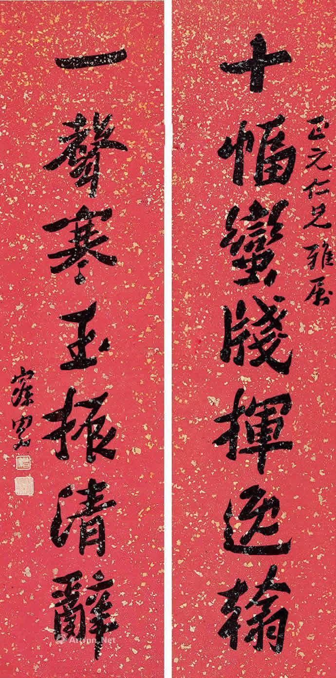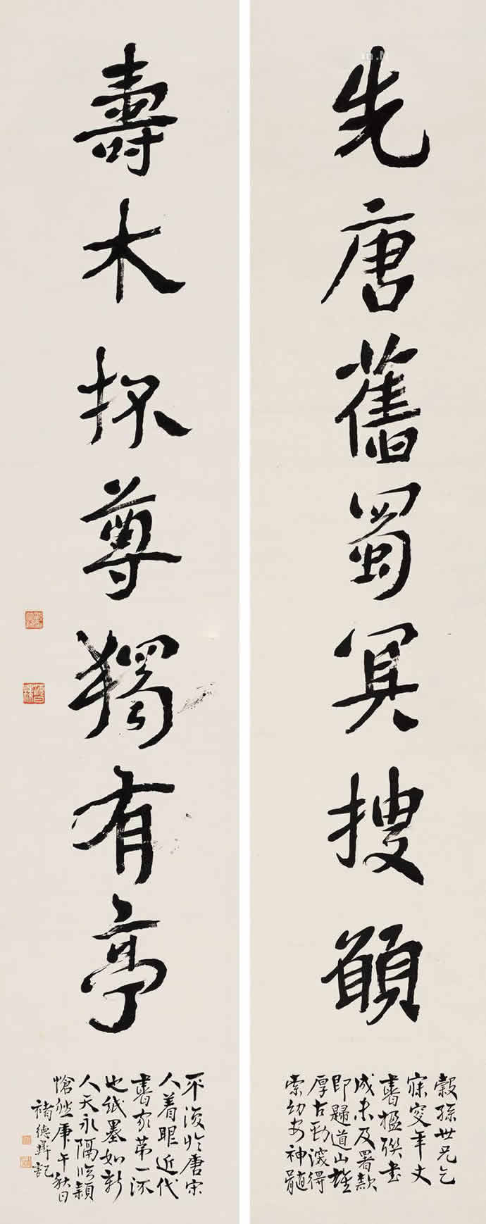 △沈曾植《楷书五言联》140.5×37.5cm×2