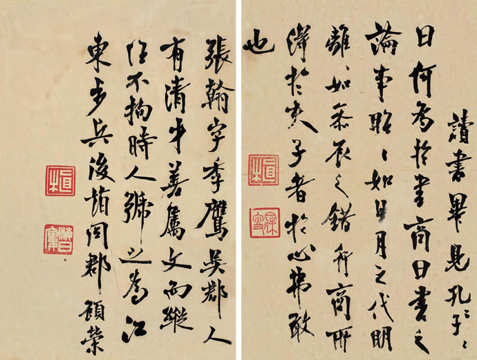△沈曾植《行书临欧帖》29×19cm×2