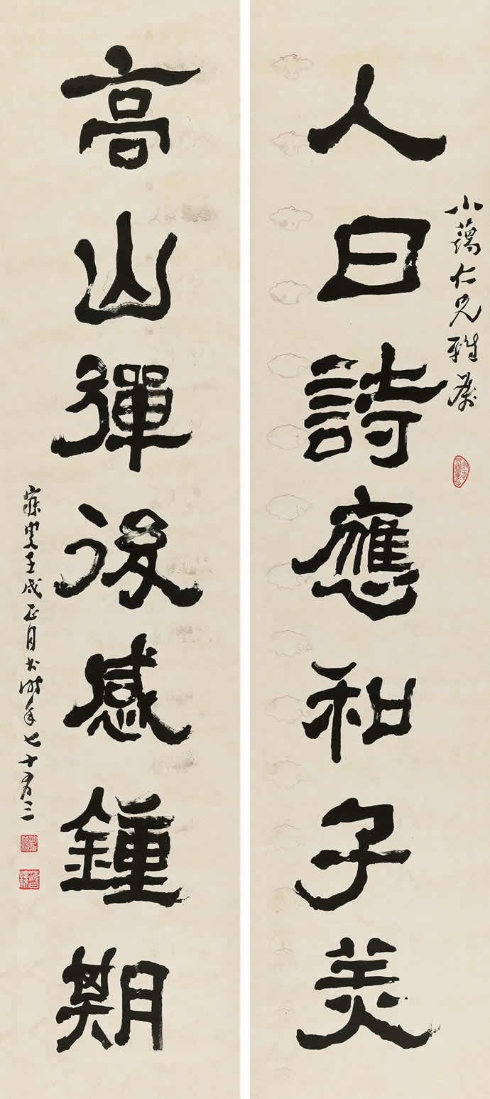 △沈曾植1922年作《隶书七言联》170×37cm×2