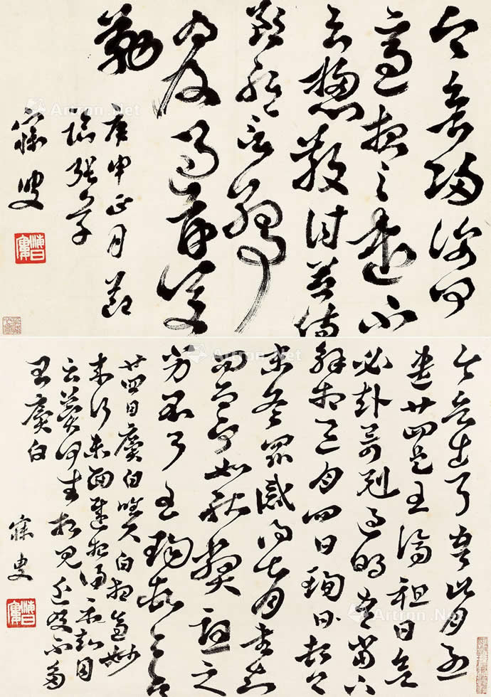 △沈曾植《草书两帧》27×38.5cm×2