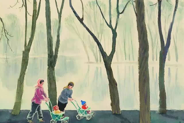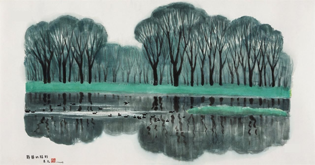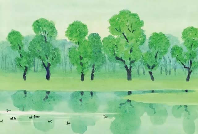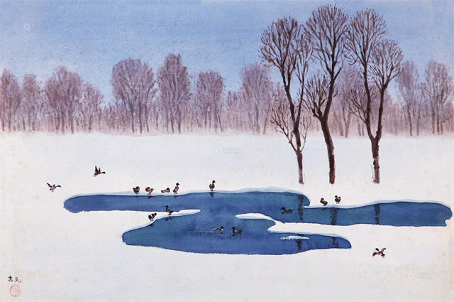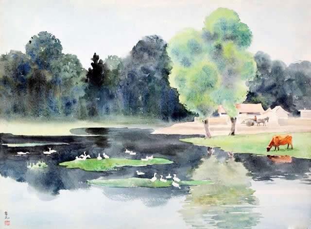 △静静的玉渊潭 古元 38.5cm×52.5cm 1979年 水彩
