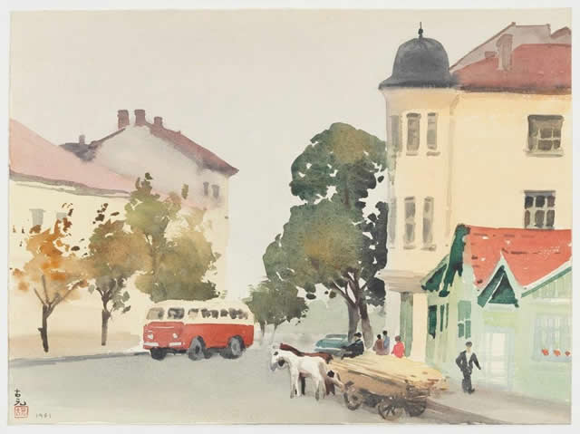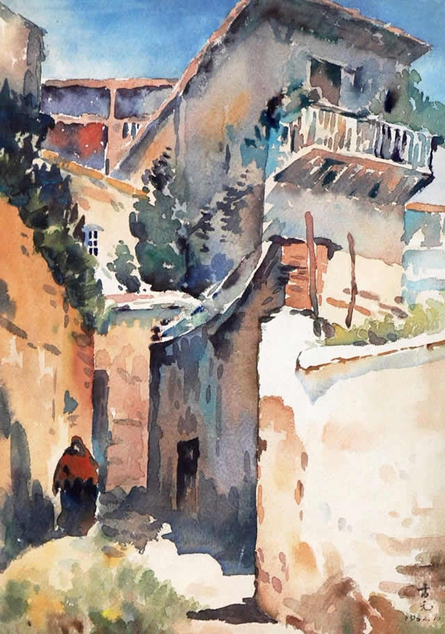 △街景之二保加利亚写生 古元 24cm×33cm 1961年 水彩