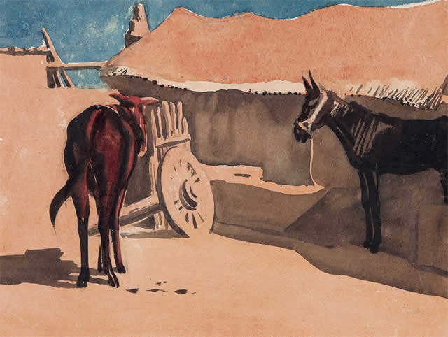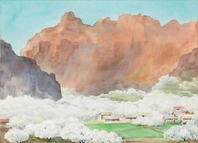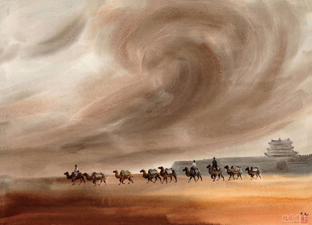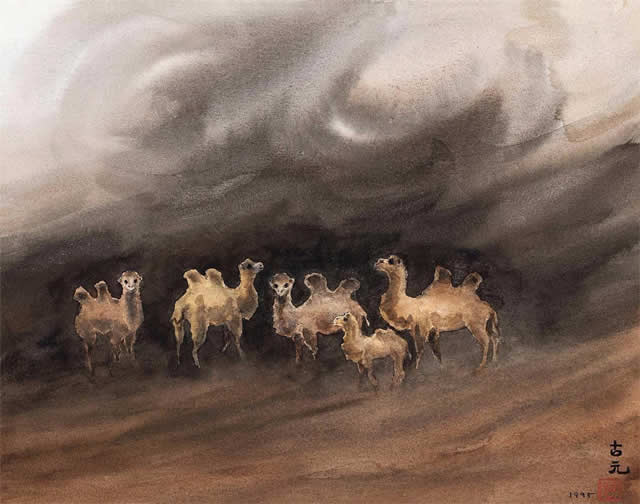 △春风吹过玉门关 古元 40cm×55cm 1990年代 水彩