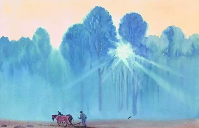 △晨耕,38cm×53cm ,纸本水彩 ,1981年
