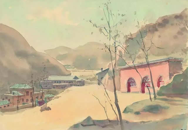 △杨家岭,24cm×32.5cm ,纸本水彩,1957年