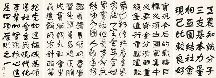 ● 书法 五条屏镜心 水墨纸本