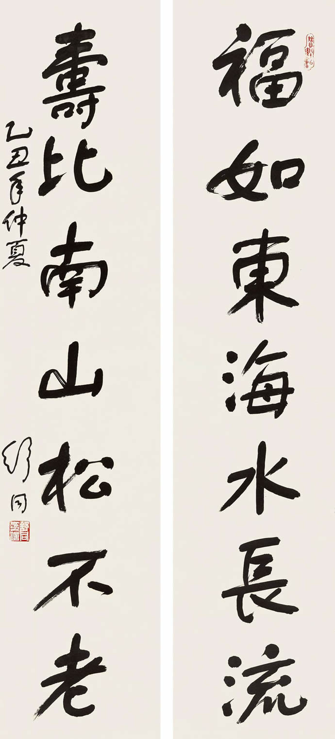 ● 1985年作 行书七言联 立轴 纸本