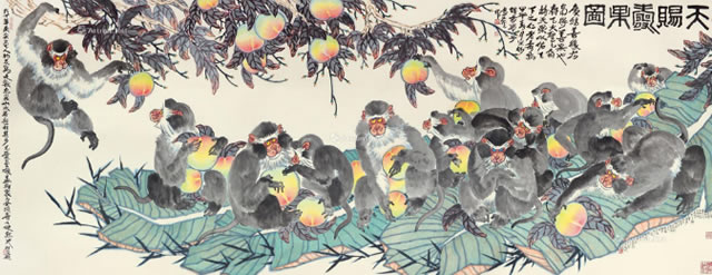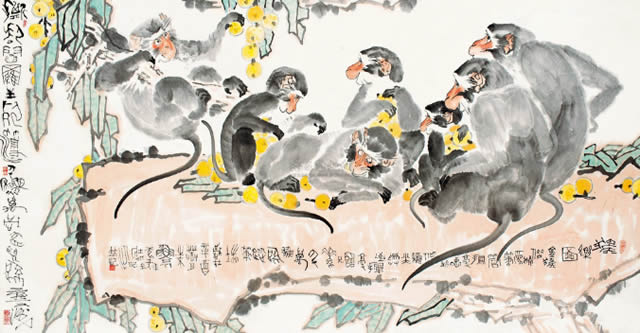 · 猴乐图 横披 设色纸本
