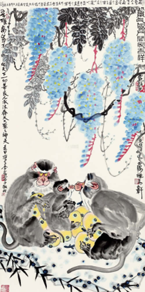 · 紫气临门合家吉祥 立轴 纸本