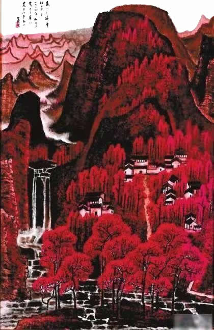 20世纪五、六十年代出现了一种新风格的山水画,其特征是“以***诗意和***圣地为轴心题材,以明亮与豪迈的情绪为审美基调”,简直不能再“红光亮”了。这一时期除李可染的一系列《万山红遍》之外,还有傅抱石、钱松喦、陆俨少、关山月等很多画家进行过类似题材的创作。《万山红遍》无疑是兼顾了政治与艺术的上乘之作。