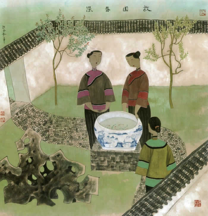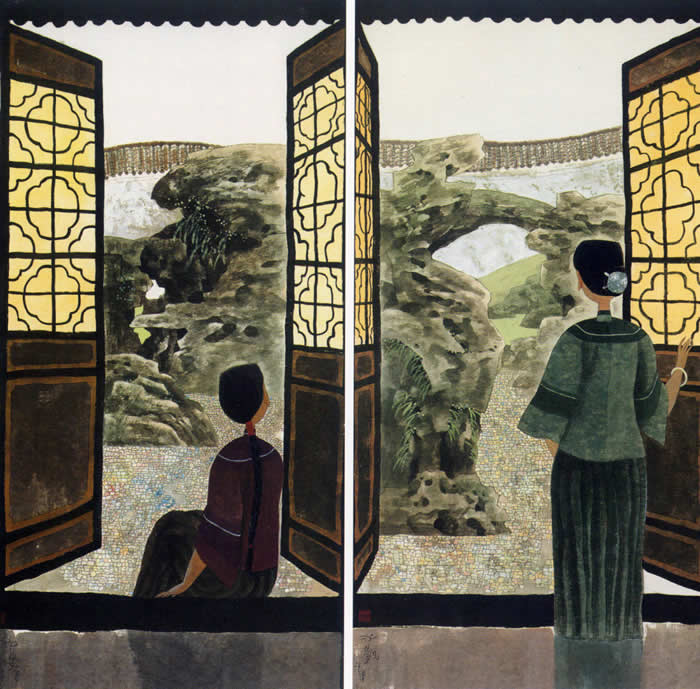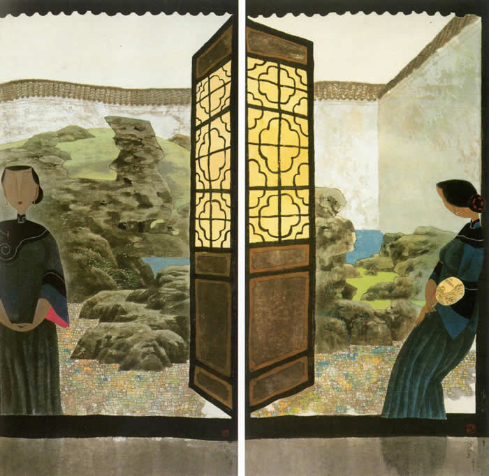 院里山水(四条屏)1-2