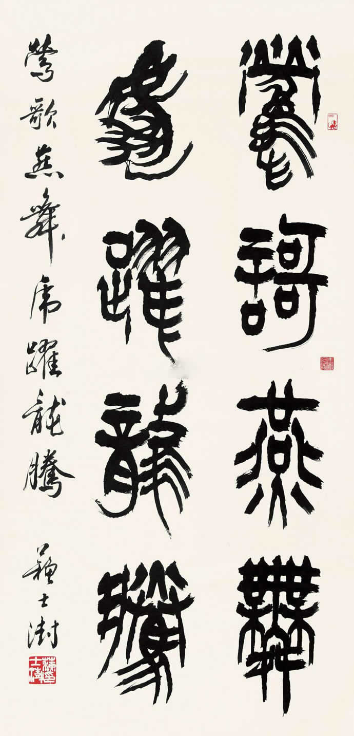 · 篆书“莺歌燕舞,虎跃龙腾” 立轴 纸本