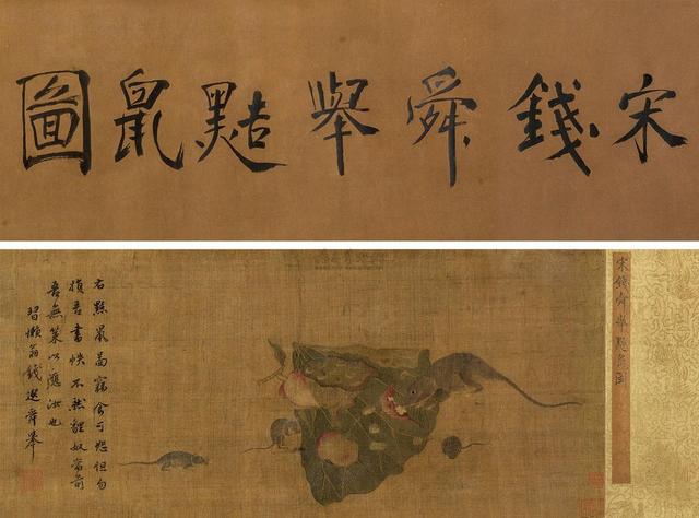 题识:右黠鼠图,窃食可恕,但勿损吾书帙,不然狸奴当前,吾无策以应汝也,习懒翁钱选舜举。