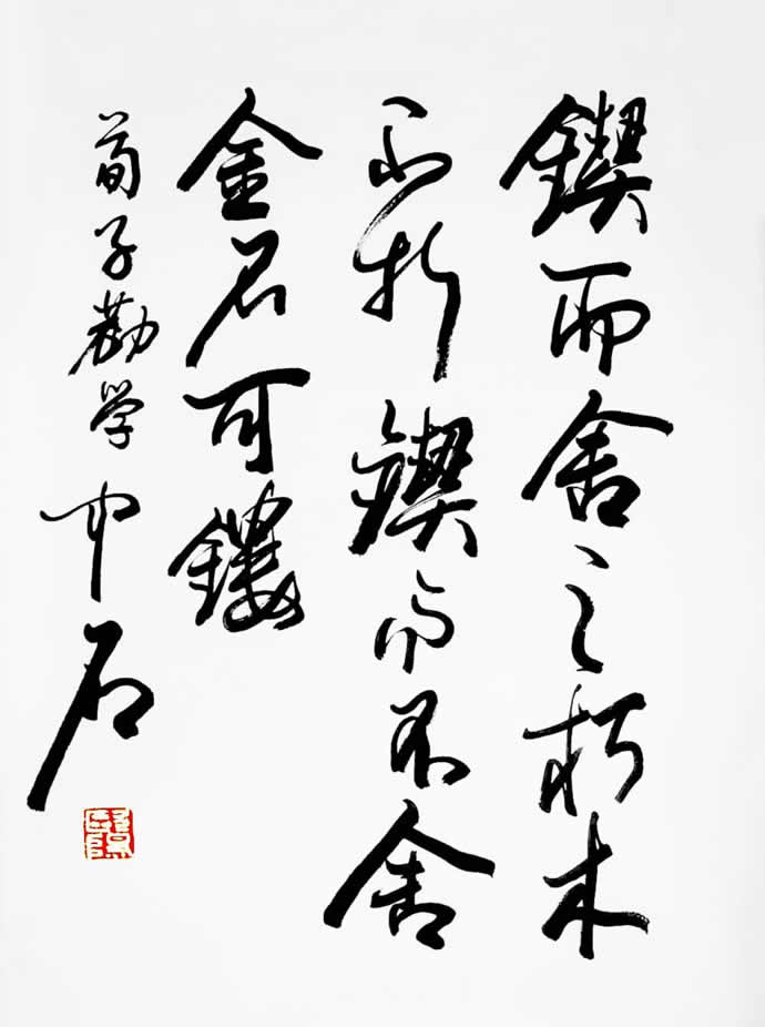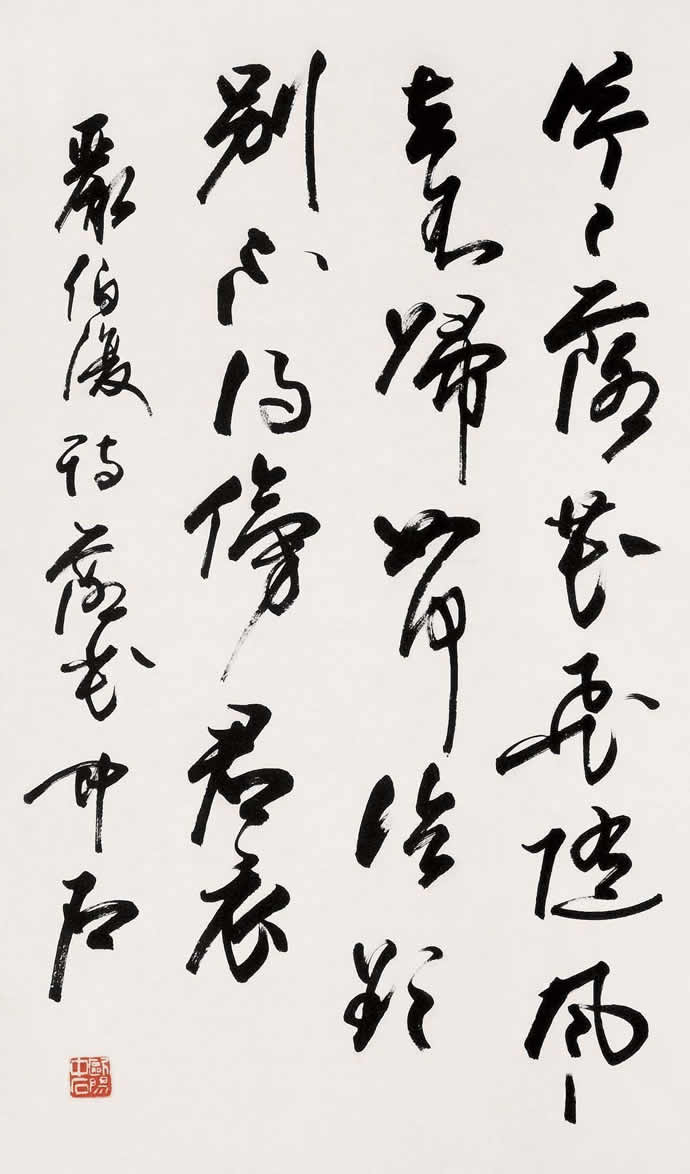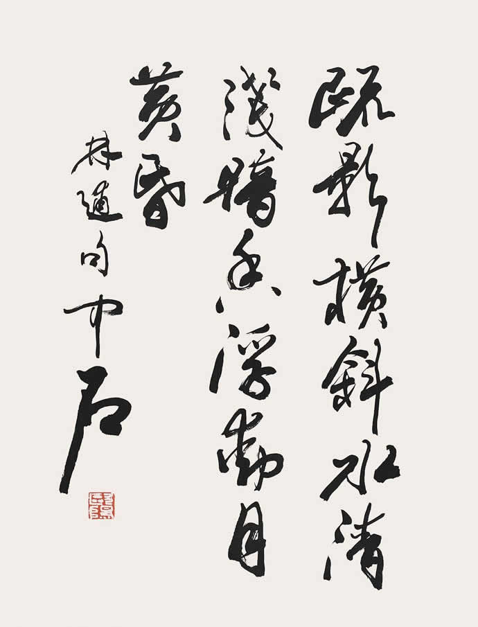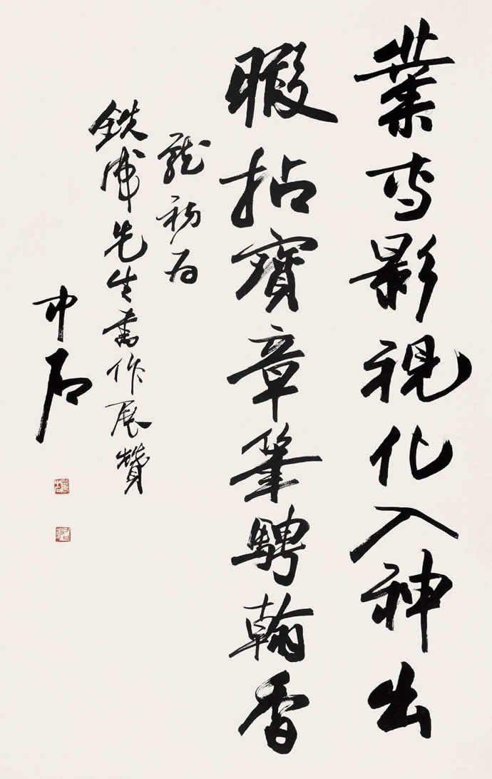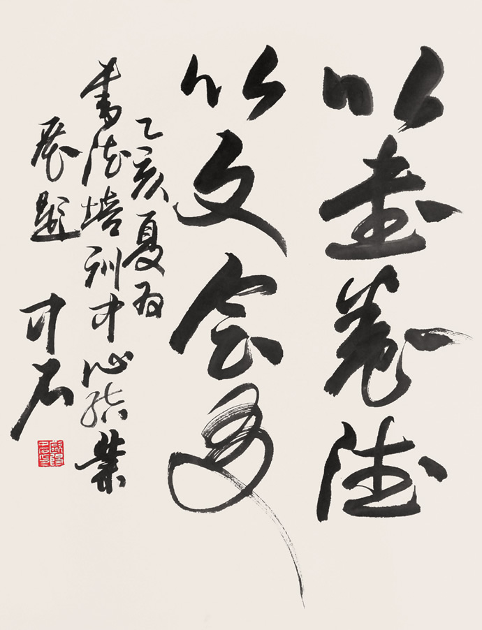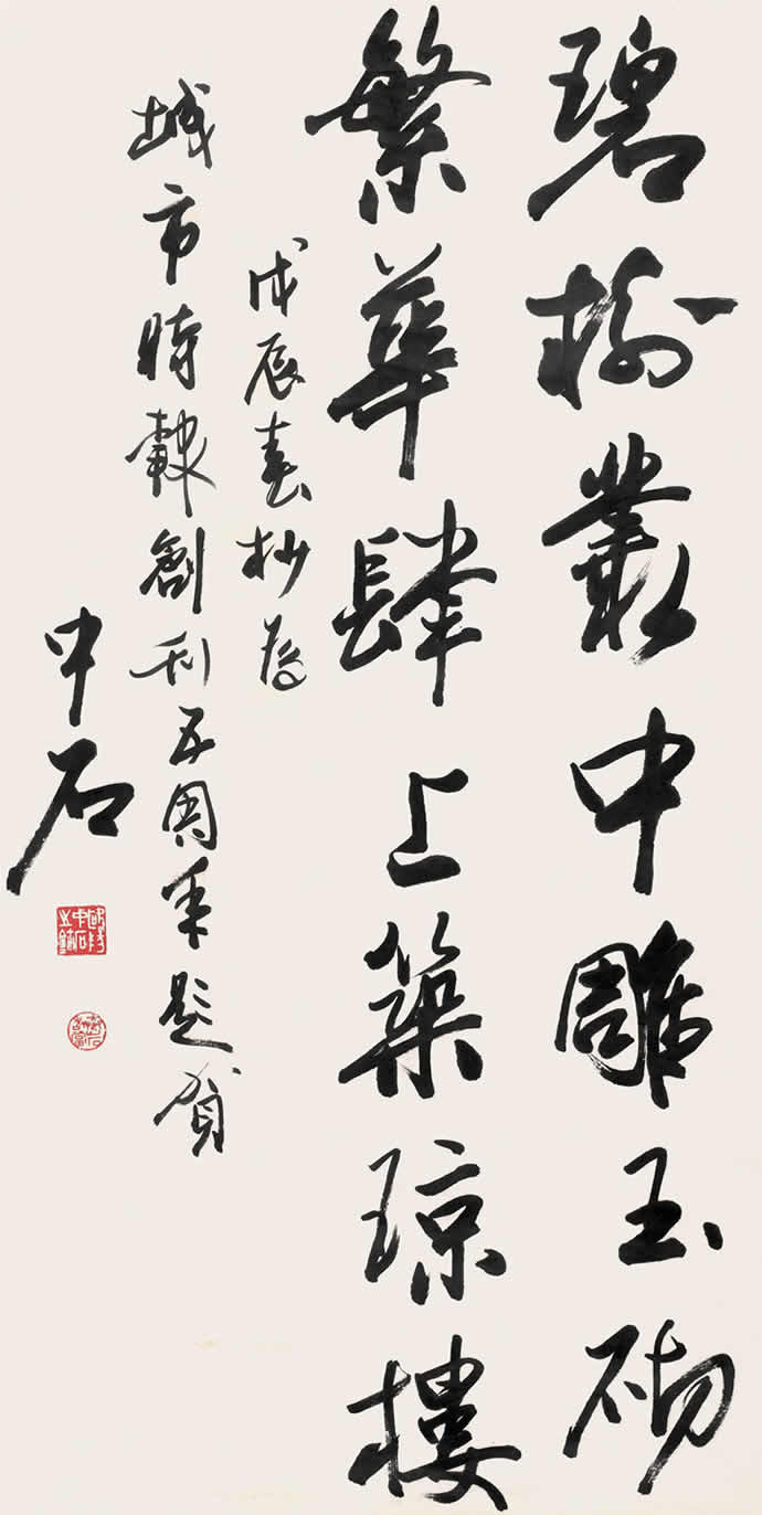 欧阳中石的书法如其为人,格调清新高雅,沉着端庄,俊朗而又飘逸,古朴而又华美。观他的作品,如欣赏高山流水,又如见万马奔腾,足见他无日不临池的深厚功力和勇于创新的精神,开创了一代新书风。