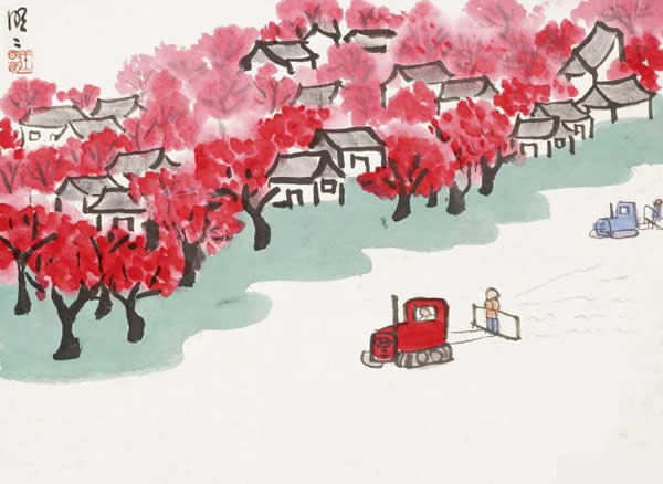 现在的中国画走向了两个极端,一个是普及性的“大写意”,胡涂乱抹,自欺欺人;二是做作之风,求大、求满、求全、求实,不是求艺,而是在比工夫,比谁下的力气大,不知也不会顾及中国画的真谛――体“道”。