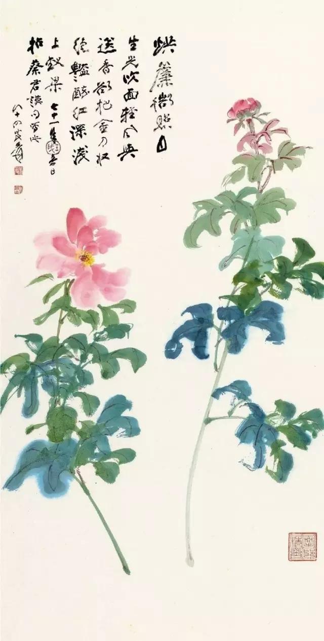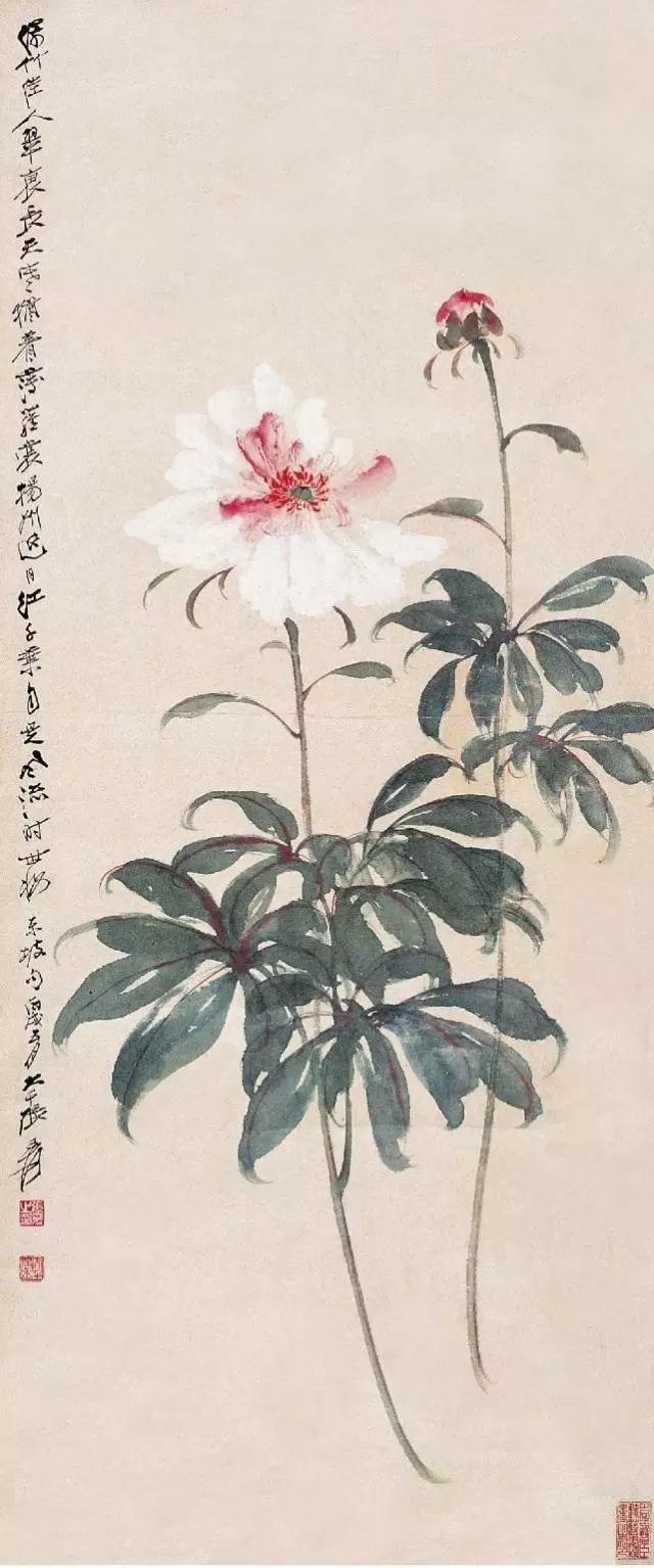 张大千是全能型画家,其创作达“包众体之长,兼南北二张大千创作作品宗之富丽”,集文人画、作家画、宫廷画和民间艺术为一体。他笔下之木本花卉的枝干柔中蕴刚,用墨华滋多变,敷色清嫩鲜活,意境闲逸。今天我们就来看看张大千画的那些芍药。