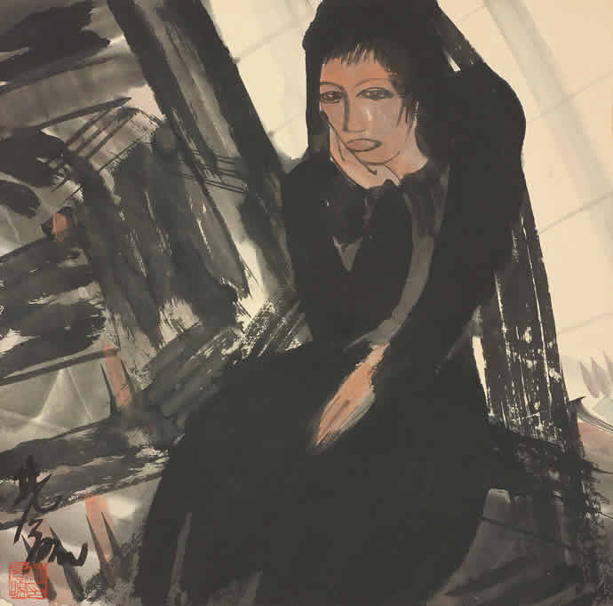 △林风眠 黑衣少女 纸本 彩墨 32.5X33厘米