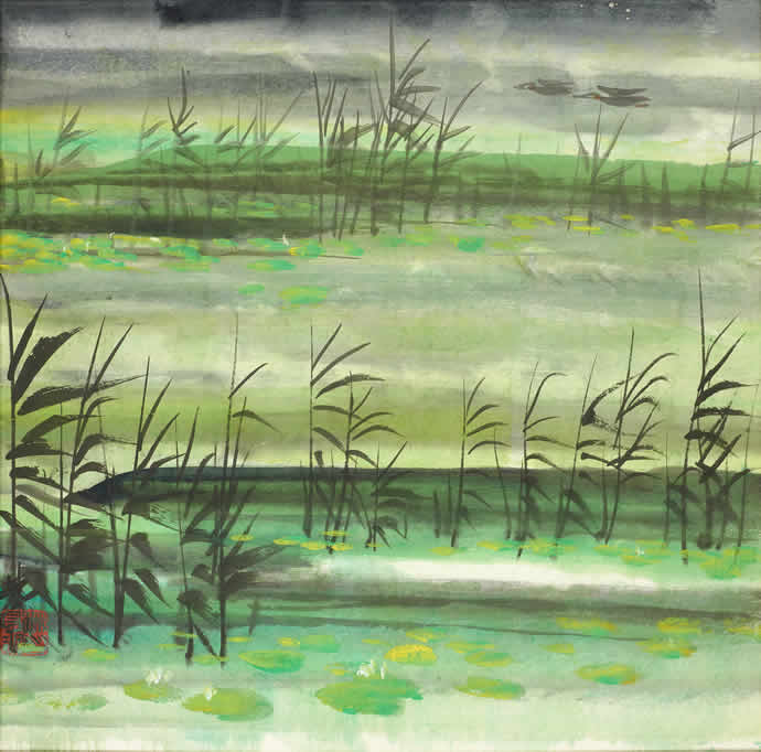 △林风眠 秋塘 纸本 彩墨 34X34.5厘米