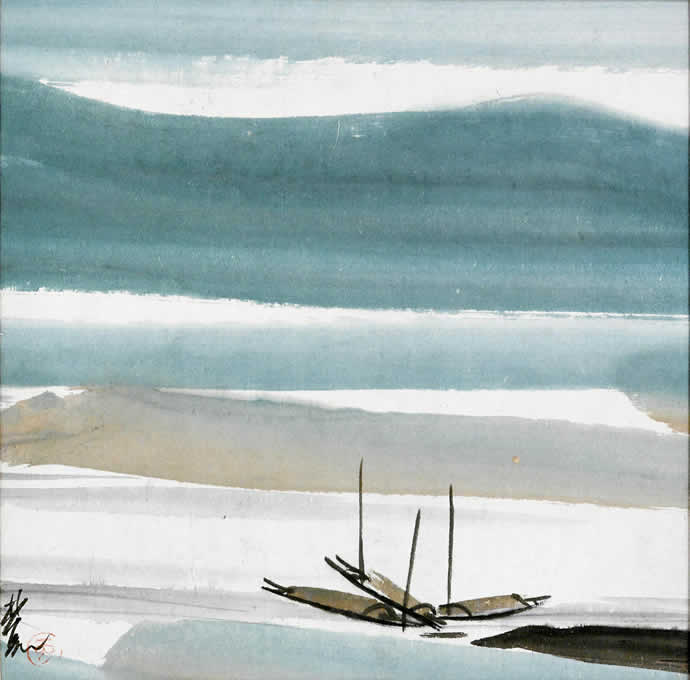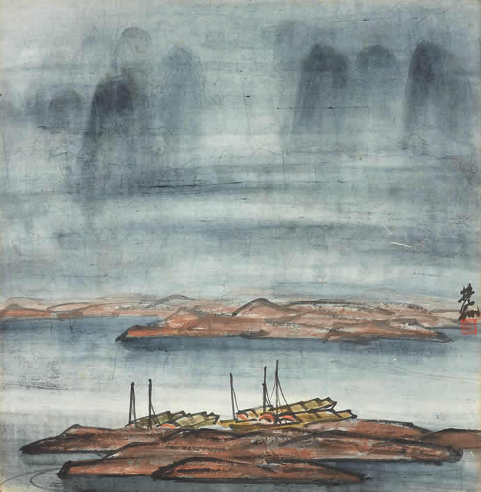 △林风眠 野渡 纸本 彩墨 31×31厘米