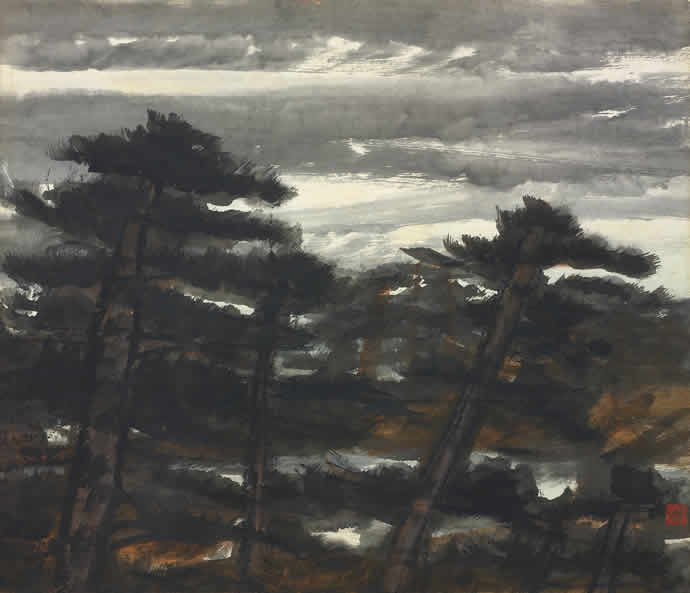 △林风眠 夜色生风 纸本 彩墨 49.5X58.7厘米