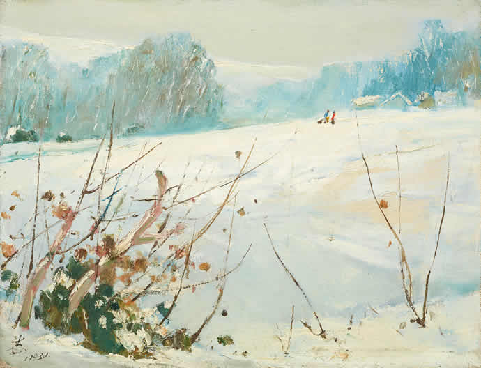 △苏天赐 初雪 布面 油彩 50X65厘米 1993年