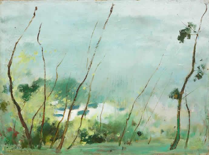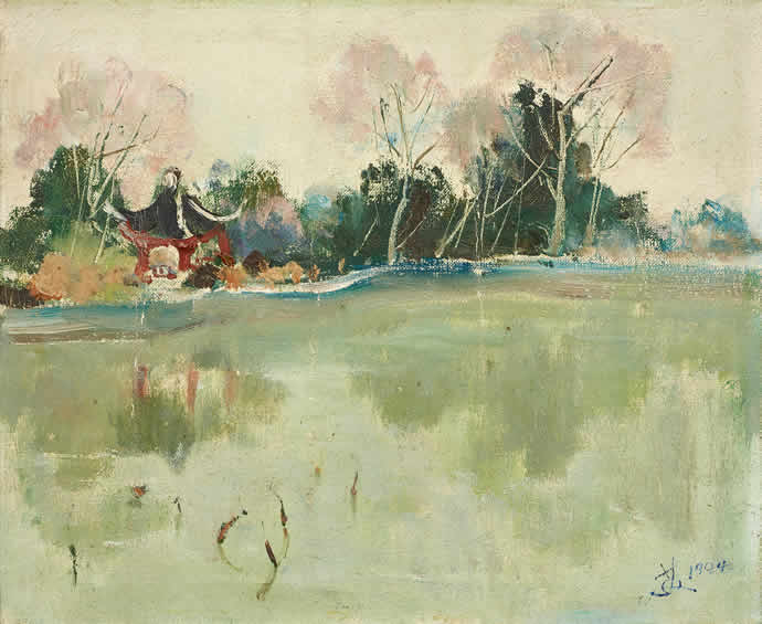 △苏天赐 春日池塘 布面 油彩 33X40厘米 1994年