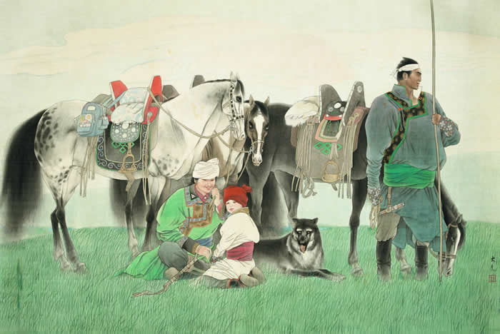 刘大为1945年出生。受教于叶浅予、蒋兆和、李可染、吴作人、黄胄等中国著名画家,基本功扎实,并刻意求新,工笔重彩和水墨写意兼精,是一位全能型画家。