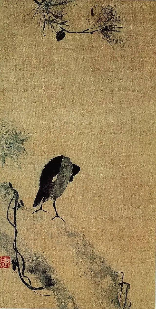 《叭叭鸟图》 日本国立美术馆藏。牧溪生活的年代,是日本镰仓时代,正是日宋贸易繁荣的时期。在 1176 至 1200 年间,有多处关于日本船只到达中国大陆的记录。随着贸易的发展,大量的中国陶瓷、织物和绘画输入日本。这些物品所展示的“美”成为日本权力者憧憬和追求的目标。牧溪的大部分画作大约也在南宋末年流入日本,对日本美术史的发展产生了巨大的影响。因此,现在牧溪的作品主要收藏在日本。另外,镰仓时代中国禅宗作为新佛教的主流风靡日本,这也增加了日本对牧溪作品的推崇。正如日本著名学者铃木大拙曾经明确指出禅与水墨画的内在联系:“水墨画的原理实际上正是由禅的体验引发而来。东方水墨画中所体现的诸如直朴、冲淡、流泽、灵悟、完美等种种特性,几乎毫无例外同禅有着有机的联系。”