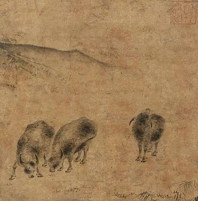 《六柿图》 纸本 日本京都龙光院藏。牧溪,“溪”亦作“谿”,生活在中国画发展的高峰期——宋代,于南宋灭亡后两年的公元 1281 年圆寂。他是中国早期的禅僧,在当时并未受到重视,那时的文人画领域,对牧溪的评价较低,比如元人汤垕在《画鉴》中说:“近世牧溪僧法常作墨竹,粗恶无古法。”但牧溪却在日本以其清幽、空寂和不假妆饰的作品获得了极高的声望与尊崇。他与玉涧构成日本“禅馀画派”的鼻祖,被称为“日本画道的大恩人”。宫崎骏工作室负责人高畑勋曾说:“我喜欢的正是中国水墨画里的留白,比如南宋牧溪的作品。中国画很了不起,对日本学画画的人影响很大。大幅留白很符合日本人的审美观,所以我拍《辉夜姬物语》时就学了留白。留白饱含真意。”作家川端康成也曾这样谈到牧溪:“日本把牧溪视为最高,由此可以窥见中国与日本的不同。”