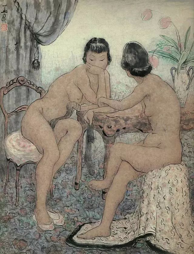 △ 潘玉良-姊妹相亲-97×73-纸本彩墨-1954