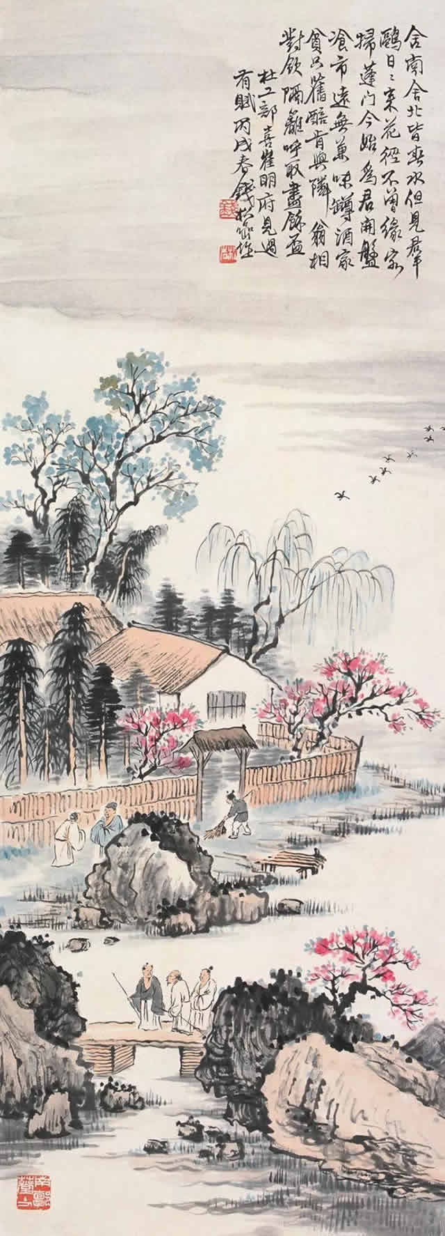之后又临摹唐寅、石涛笔法,兼收宋、元、明、清各家之长,并融会贯通,自成一格。青年时代创作的《寿相图》和《山水》便入选了民国第一届美展,一时传为美谈。这样的经历不仅为钱松喦打下了坚实的基础,也奠定了他的艺术发展之路。