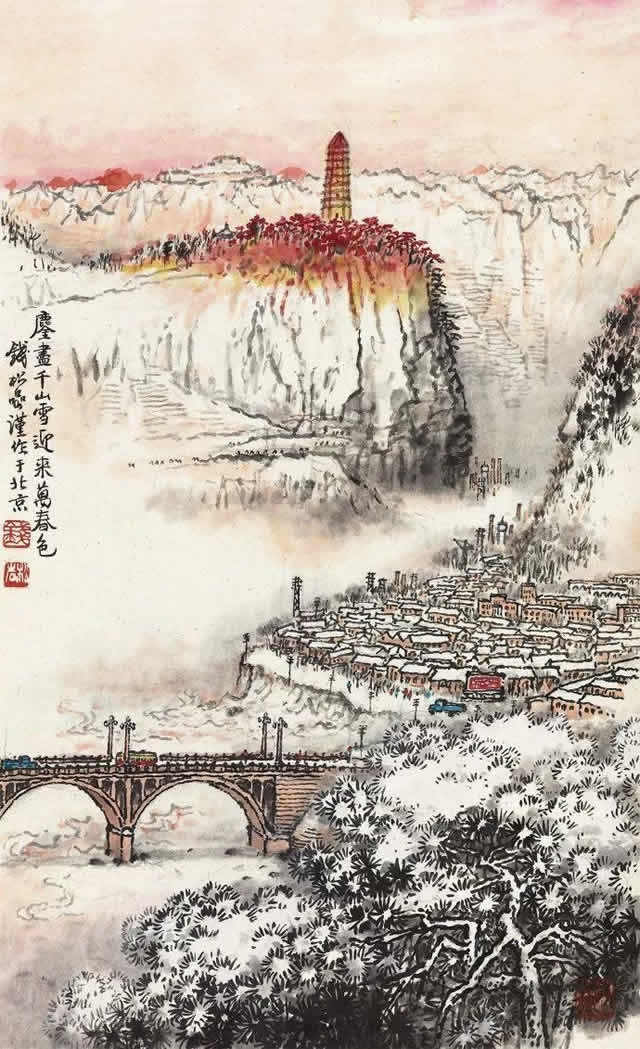 1960年,钱松喦满怀着无限的创作热情与傅抱石等画友做了二万三千里旅行写生,这次写生无异成了他艺术的催化剂。他过龙门、攀华山、游圣地延安、看西安碑林,登秦岭、观峨眉、嘉岭怒吼、巫山云雨,尽收眼底;出洞庭、入三峡、沐湘江风雨、瞻领袖故居,满载而归。