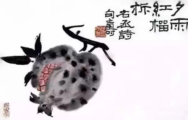 潘天寿《夕雨红榴柝》