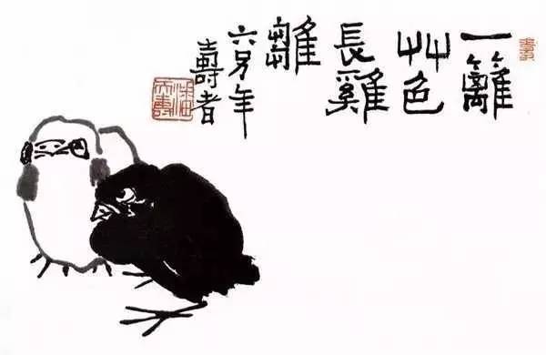 潘天寿《一篱草色长鸡雏》